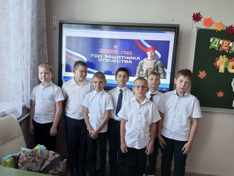 1 сентября 2025 года - в этот день на классных часах была главная тема, посвященная Году защитника Отечества. Ребята познакомились с видео обращением президента Российской Федерации В.В. Путина, посмотрели фильм посвящённый 80- летию Победы в Великой Отечественной войне.