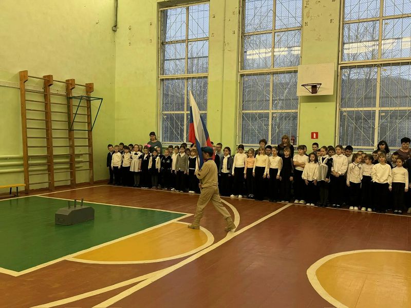 Утро понедельника 19 января 2026 года в школе традиционно началось с торжественной линейки, церемонии вноса флага и исполнения гимна Российской Федерации.