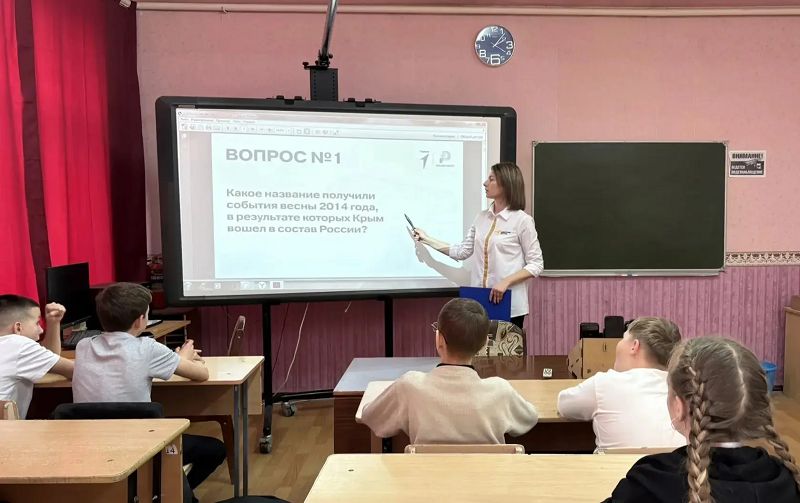 17-18 марта советник директора по воспитанию Гончарова Юлия провела в 6б и 8а классах викторину «Одна страна – одна история», посвящённую важному событию в истории нашей страны воссоединению Республики Крым и города федерального значения Севастополя с Россией.