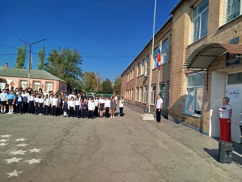 Утро понедельника в школе по традиции началось с поднятия государственного флага и исполнения гимна Российской Федерации.