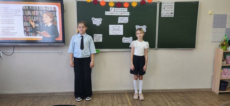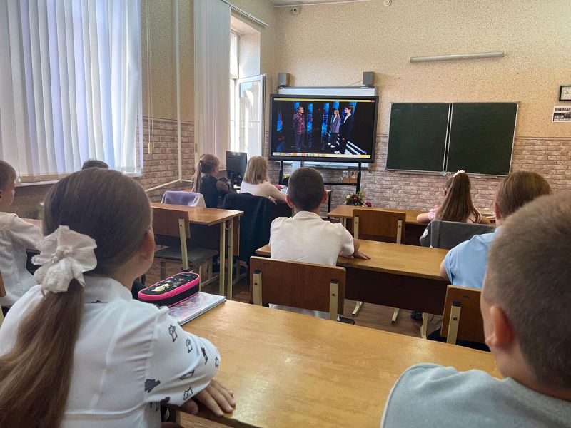 После линейки во всех классах прошло занятие "Разговоры о важном" тема которого "Русский язык в эпоху цифровых технологий".