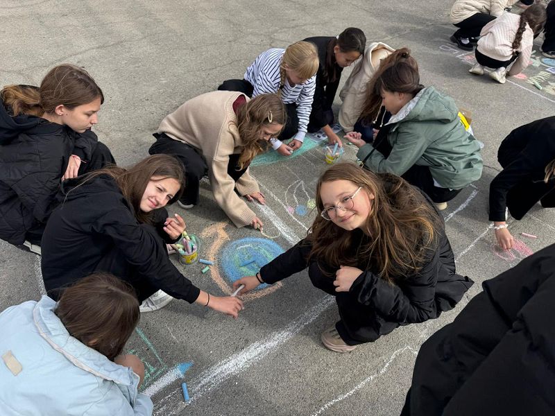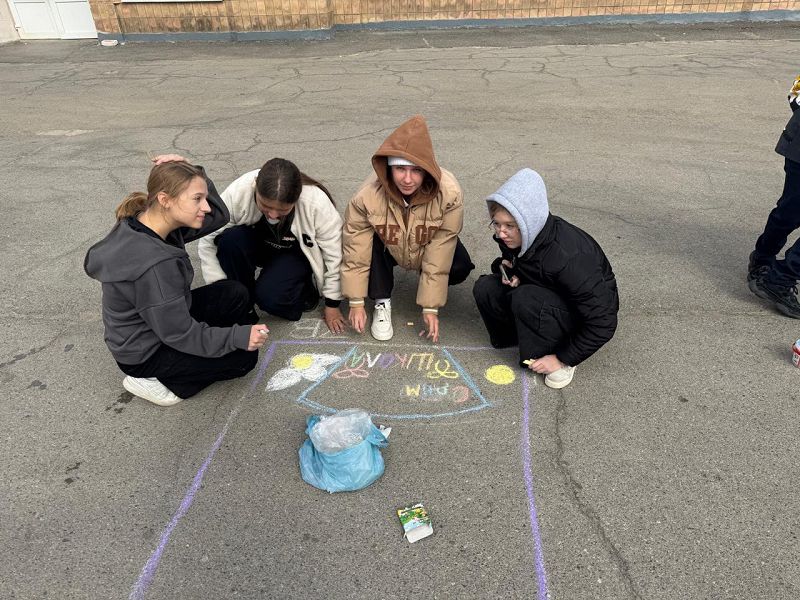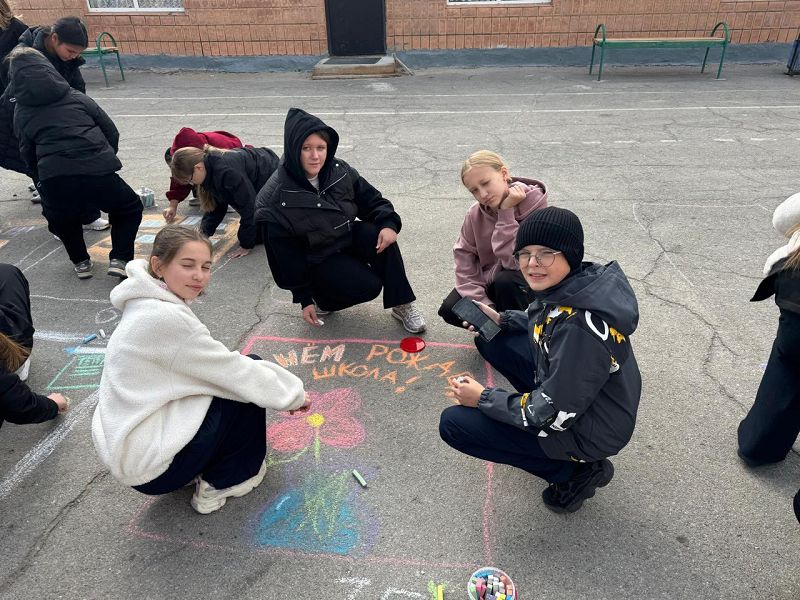 1 октября в День рождения школы, прошла выставка поздравительных открыток в виде рисунков на асфальте. Каждый класс постарался отразить любовь к родной школе в своём творчестве.