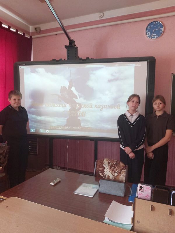 В 6б классе 14 октября прошёл классный час, посвящённый Дню памяти войсковой казачьей славы. Это памятная дата, которой можно гордиться. Как и славными людьми - казаками. Ребята посмотрели обучающее видео, узнали о героях-казаках, об участии казаков в военных действиях, о символах казачества.
