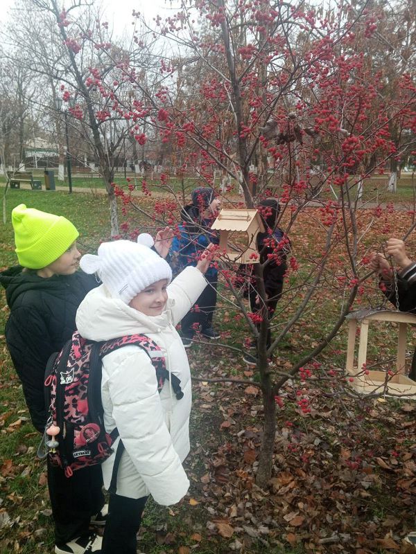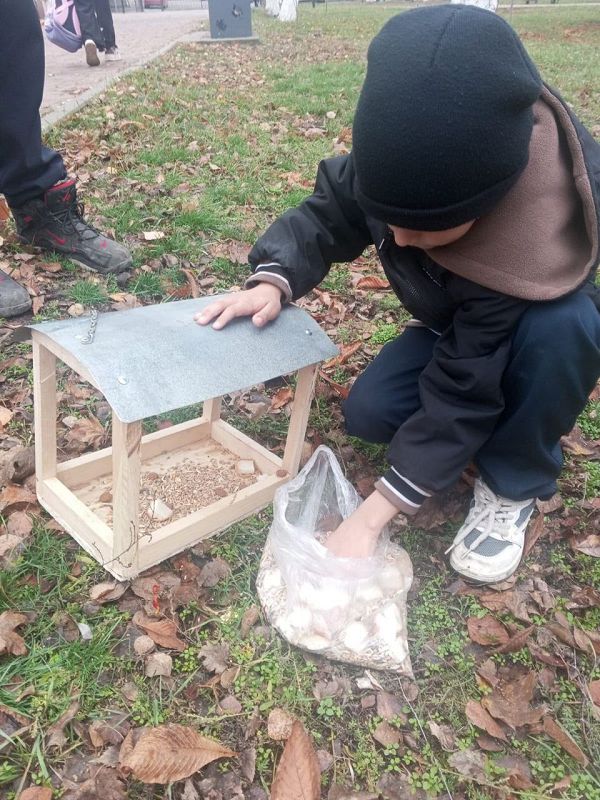 Воодушевленные рассказом синички о правилах подкормки птиц зимой, ребята развесили кормушки в парке.
