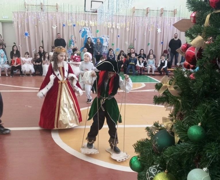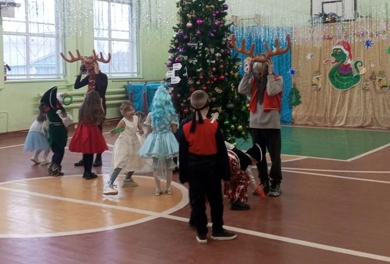 С 23-24 декабря в школе прошли новогодние мероприятие для 1-4 классов по сюжету хорошо всем известного мультфильма про трёх богатырей и коня Юлия.