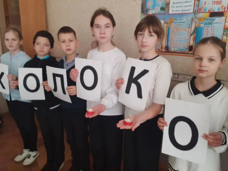 Ребята зажгли свечи и почтили память погибших в концлагерях минутой молчания.