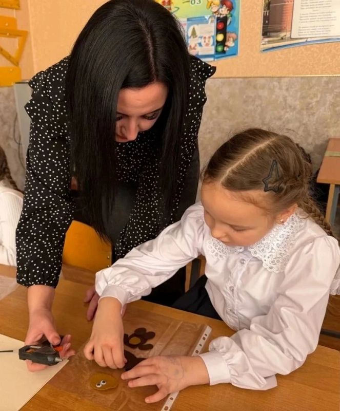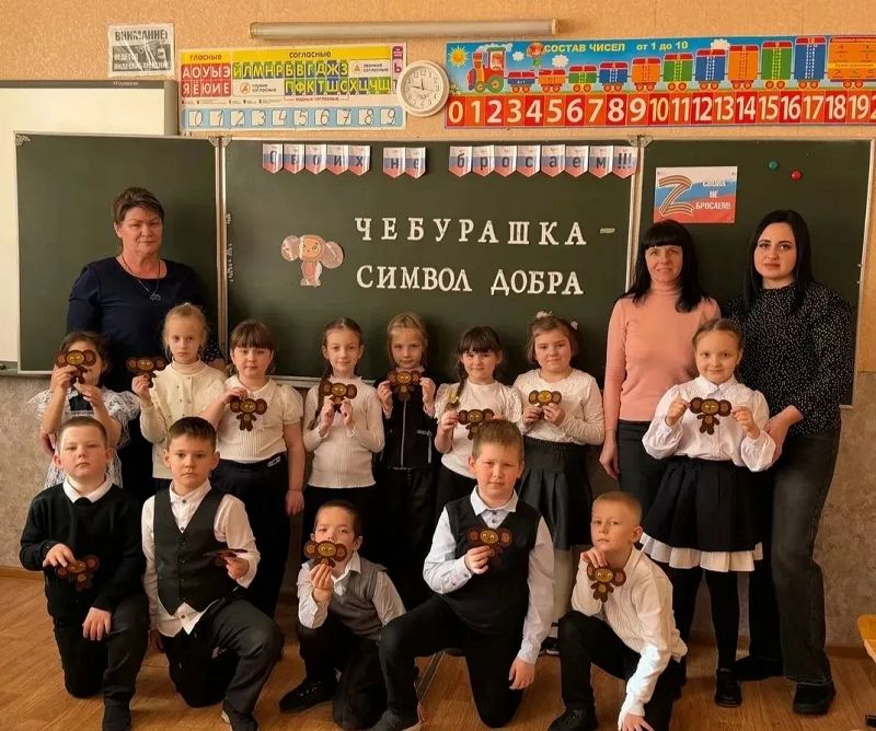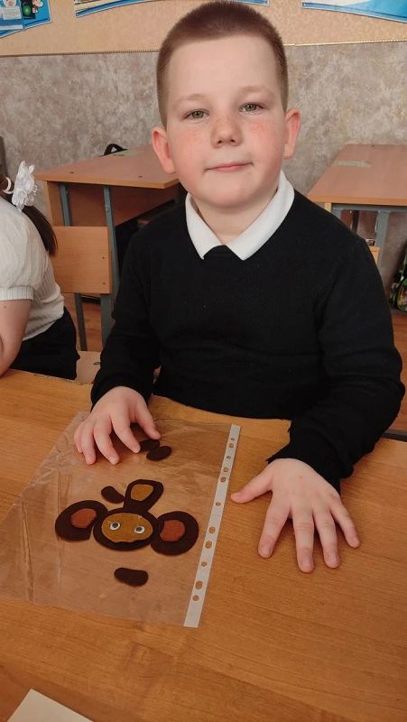 30 января для учащихся 1-А класса в рамках месячника военно-патриотической работы руководителем общественной приемной Тацинского района Денисовой Ю.С. и представителем родительского комитета Брежневой В.В.(мать члена семьи участника СВО) был проведен мастер-класс по изготовлению полюбившегося бойцам СВО символа добра - Чебурашки.