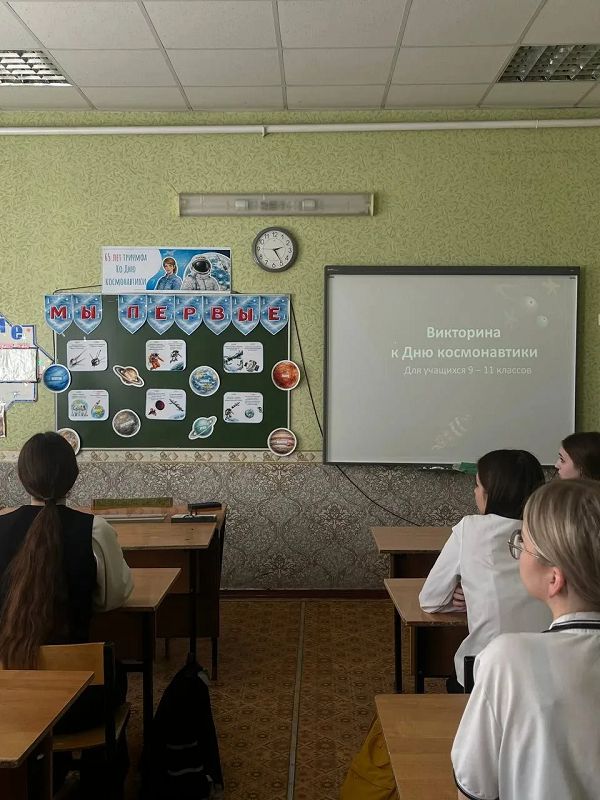В канун Дня космонавтики, 10 апреля, в год 65 - летия исторического полёта Юрия Алексеевича Гагарина, в 9 "б" классе прошло мероприятие, посвящённое этому событию в форме викторины ко Дню космонавтики, где учащиеся не только отвечали на вопросы, но и в игровой форме узнавали интересные факты о космосе, по QR- коду прослушали объявление Левитана о первом полёте человека в космос. Урок не только расширил кругозор, но и пробудил гордость за достижения российской науки.