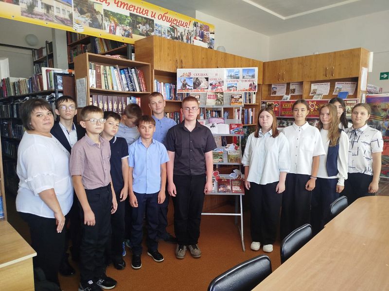 Обучающиеся 8б класса посетили районную библиотеку. Сотрудники библиотеки провели мероприятие, посвященное окончанию Второй мировой войны "И подвиг ваш мы будем помнить вечно".
