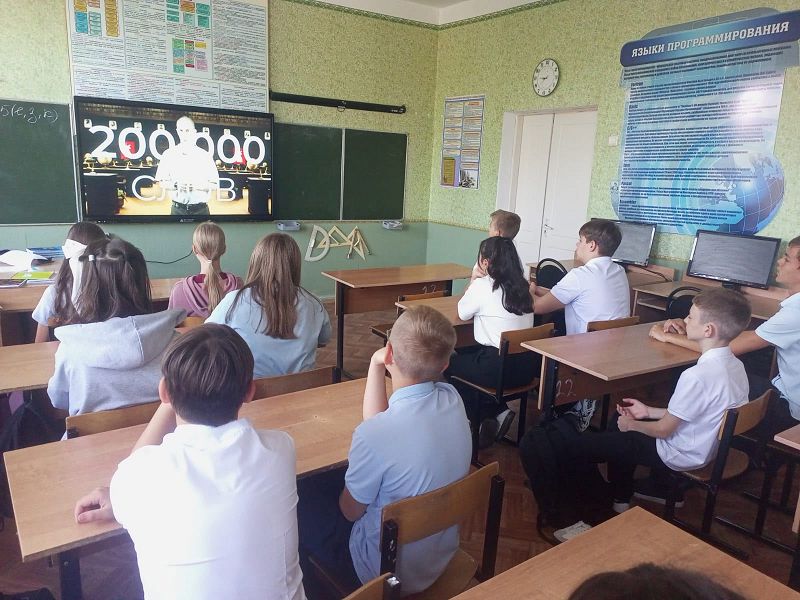 После линейки во всех классах прошло занятие "Разговоры о важном" тема которого "Русский язык в эпоху цифровых технологий".