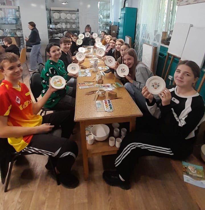 Экскурсия в музей познакомила ребят с историей завода и техникой росписи Донской посуды, а так же с художниками прославившими Донскую керамику.