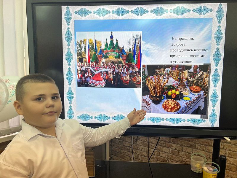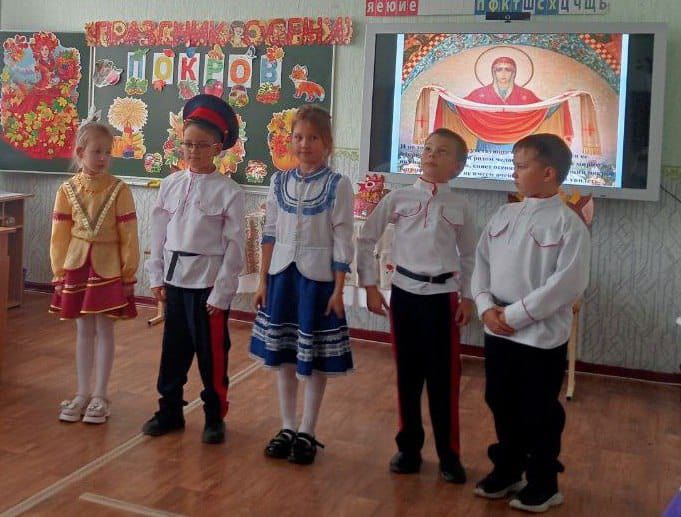 13 октября в 3б классе прошло мероприятие «Покров день». Ежегодно 14 октября отмечается большой христианский праздник – Покров Пресвятой Богородицы. Ребята узнали об истории праздника, его традициях и обрядах. Поговорили о значении праздника в жизни русского народа.