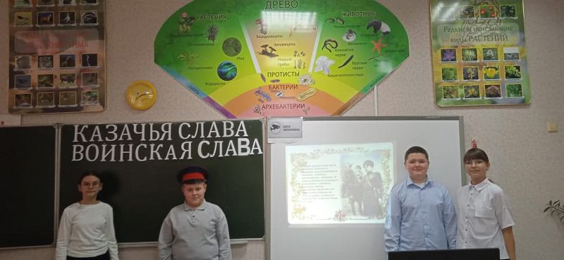 В 6б классе 14 октября прошёл классный час, посвящённый Дню памяти войсковой казачьей славы. Это памятная дата, которой можно гордиться. Как и славными людьми - казаками. Ребята посмотрели обучающее видео, узнали о героях-казаках, об участии казаков в военных действиях, о символах казачества.