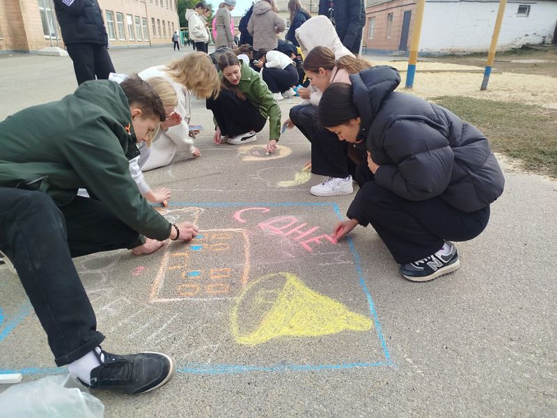1 октября в День рождения школы, прошла выставка поздравительных открыток в виде рисунков на асфальте. Каждый класс постарался отразить любовь к родной школе в своём творчестве.